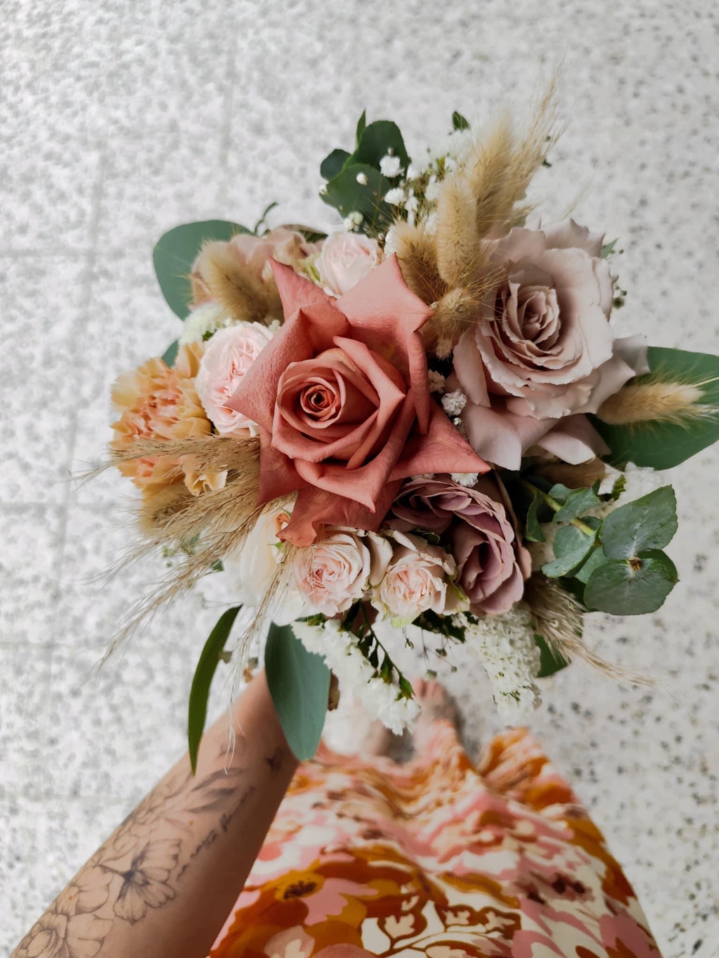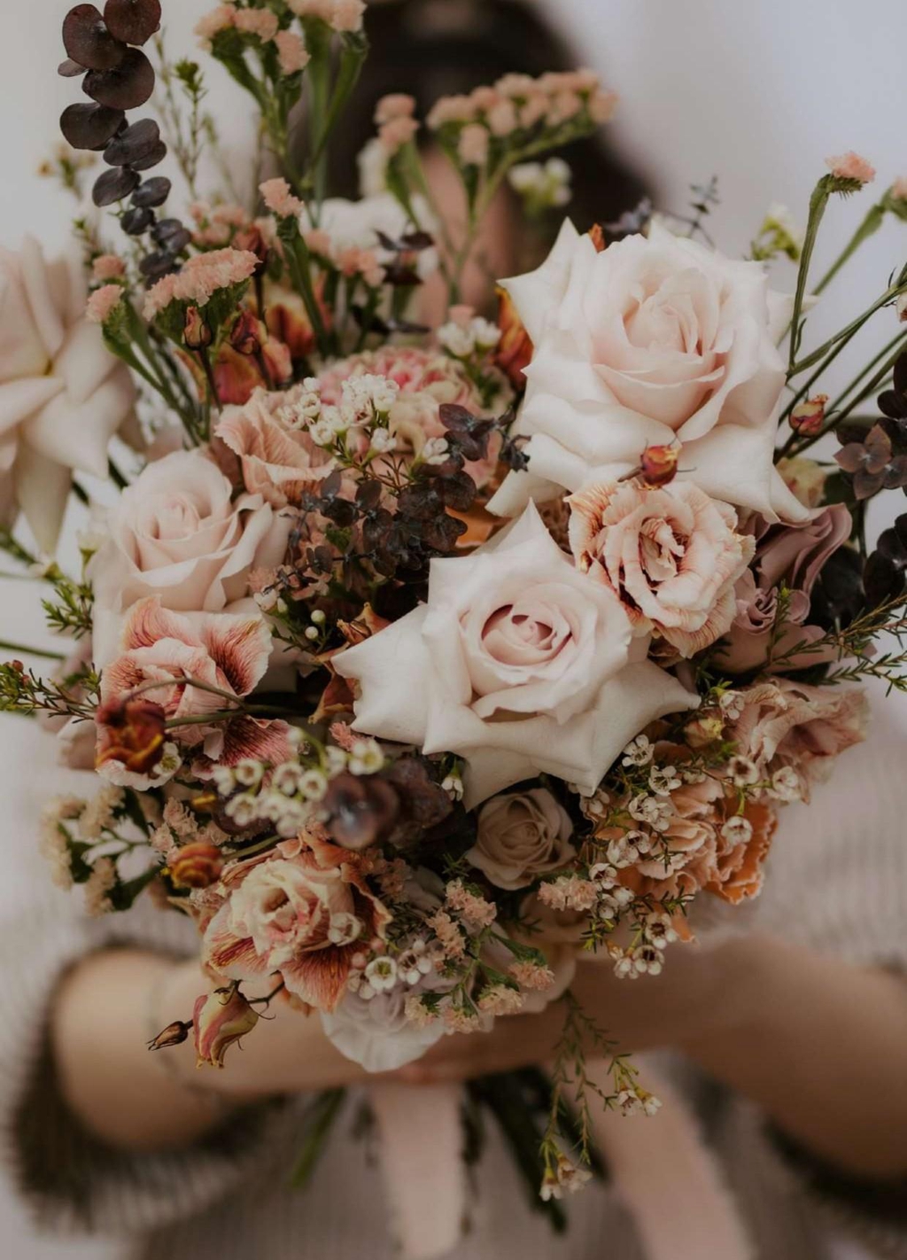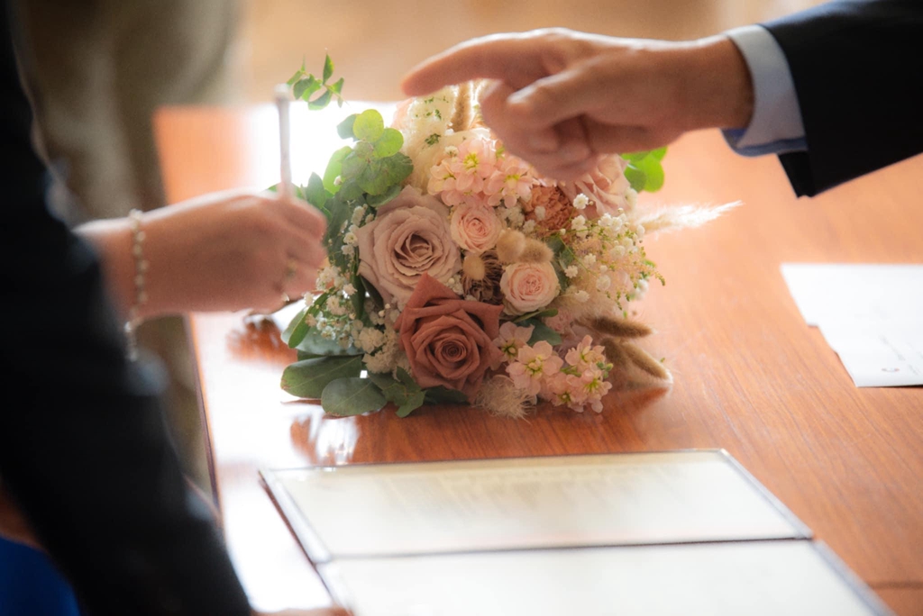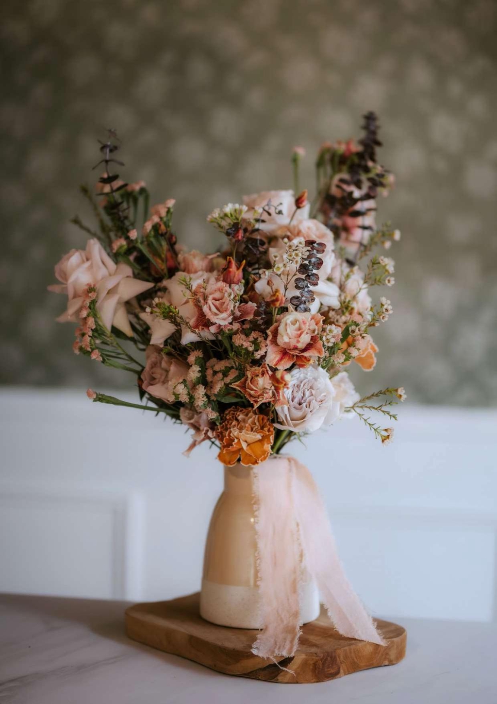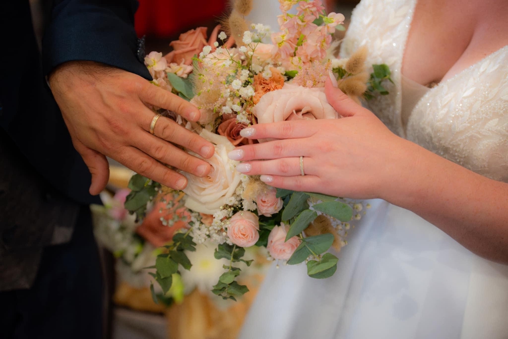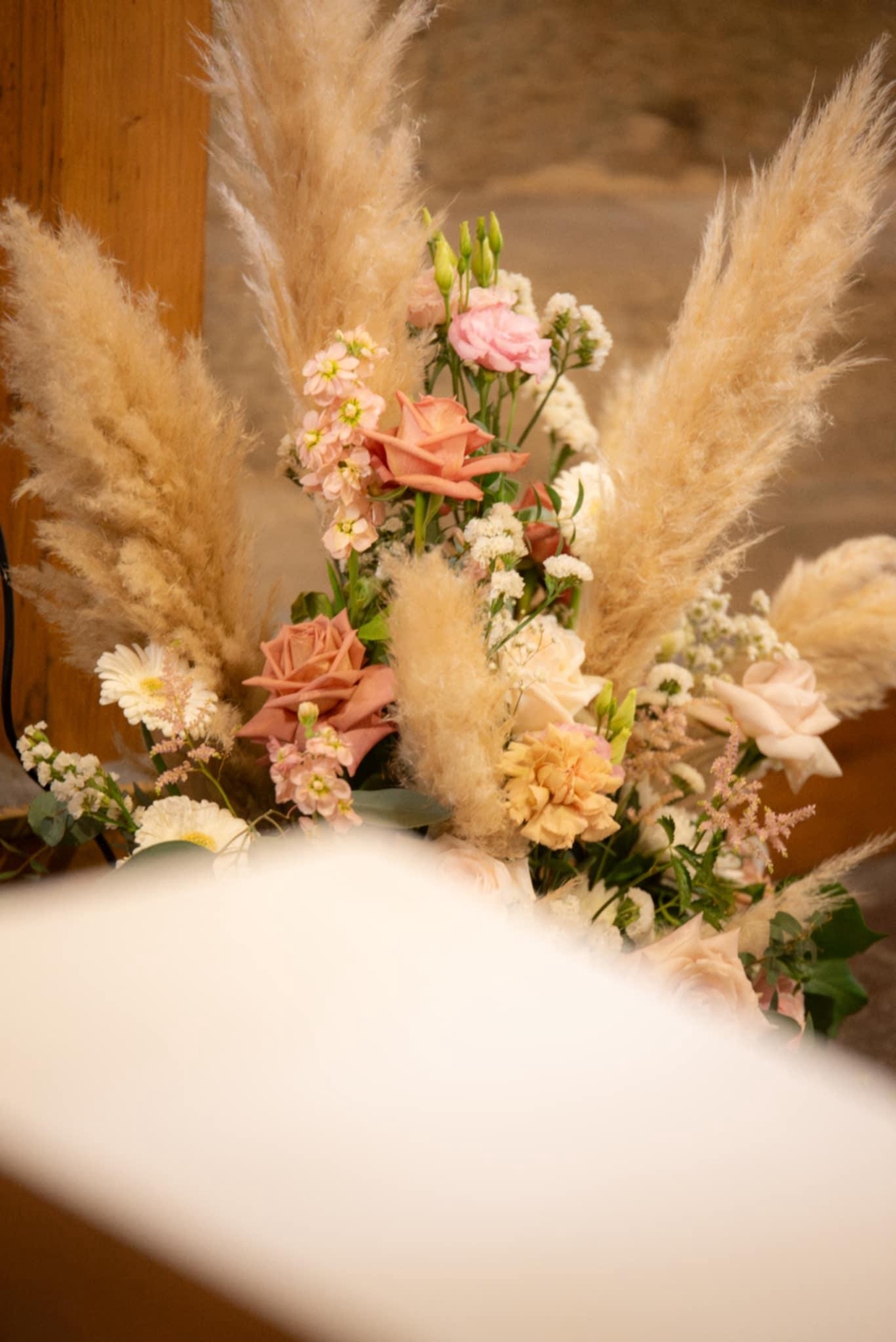 Un mariage doux et délicat avec de jolies couleurs nude en camaïeu de rose pâle, rose ancien, blanc avec quelques fleurs séchées