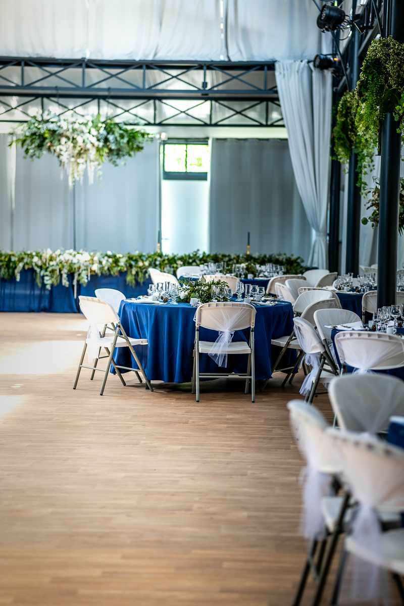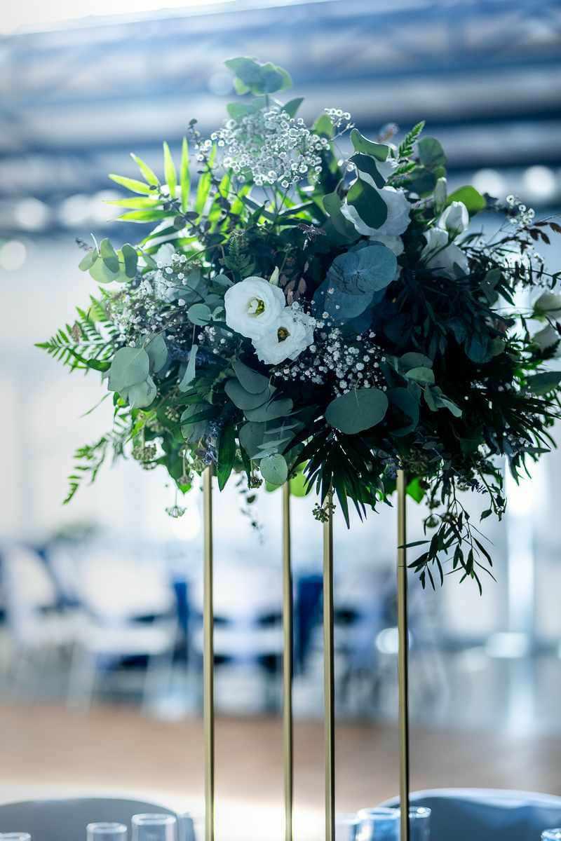 Un joli mariage vert émeraude, bleu roi et touche d'or pour deux amoureux du "Puy du fou", du végétal et des fleurs blanches.