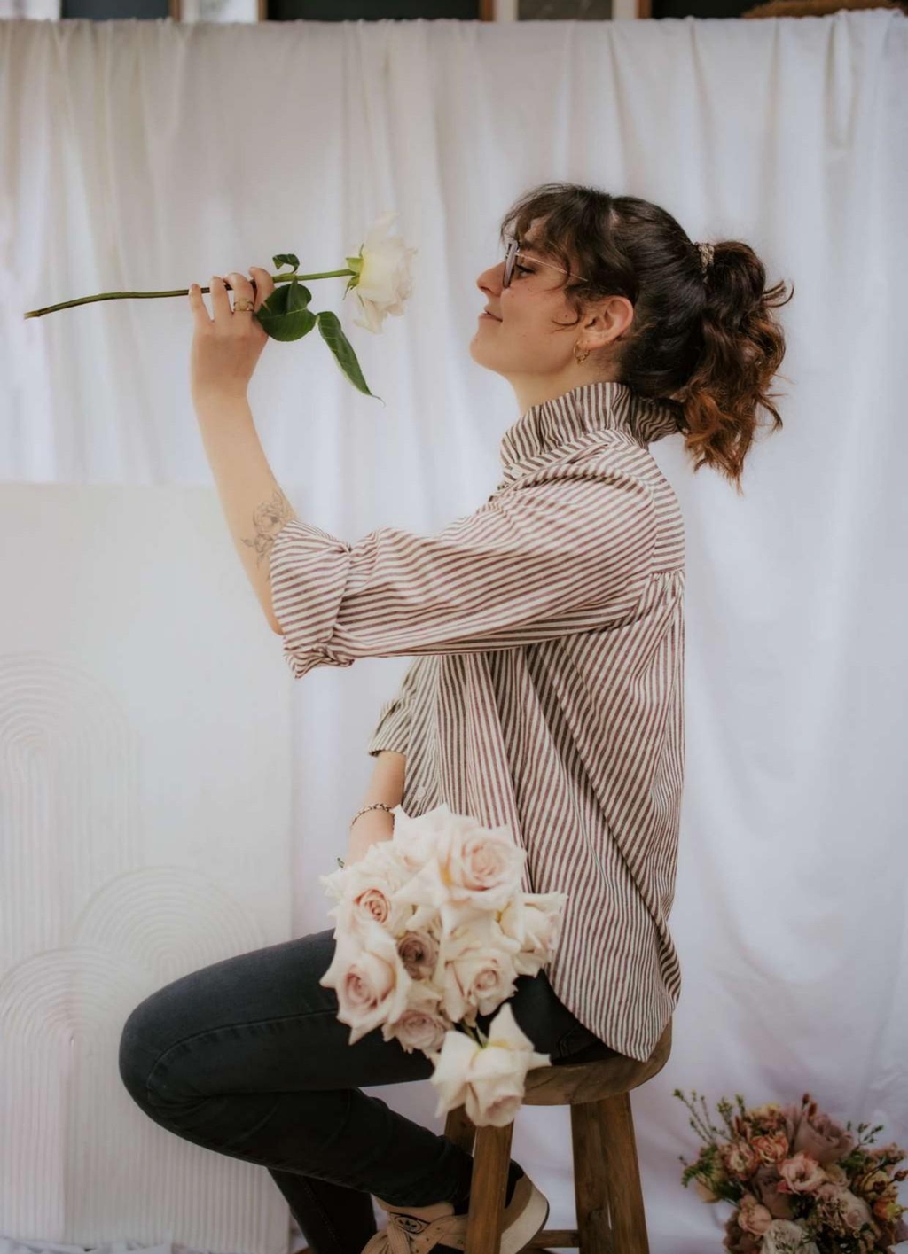 J'ai eu plaisir de réaliser les photos pour le lancement d'Albackia aux côtés de la photographe ''Emeline Guyet". Je souhaitais des photos fidèles à mon univers: sensibles, authentiques, mettant en valeur ma passion pour les fleurs et le style qui m'inspire.