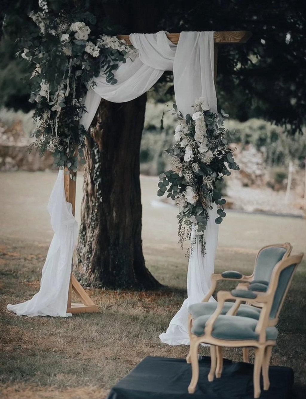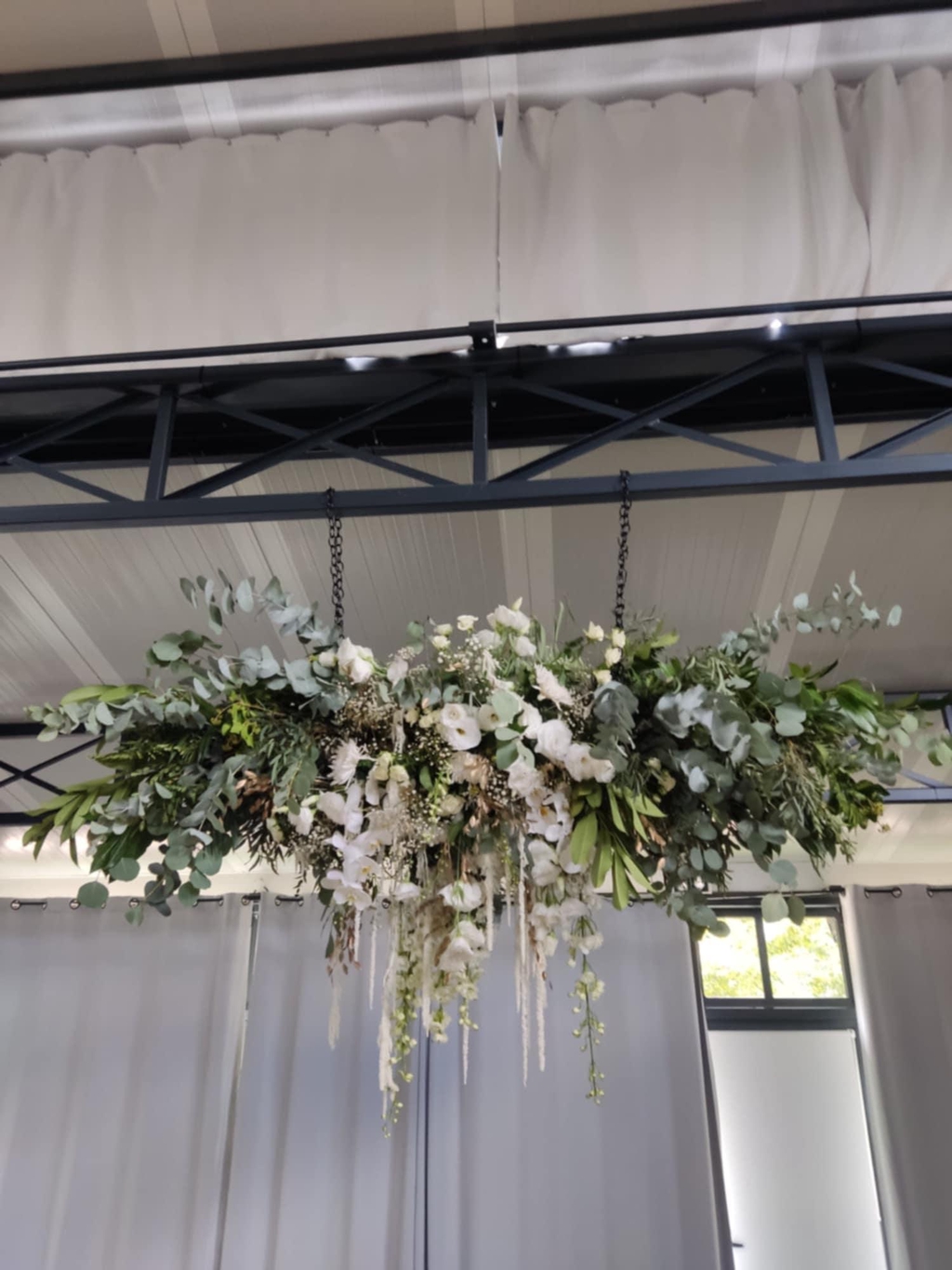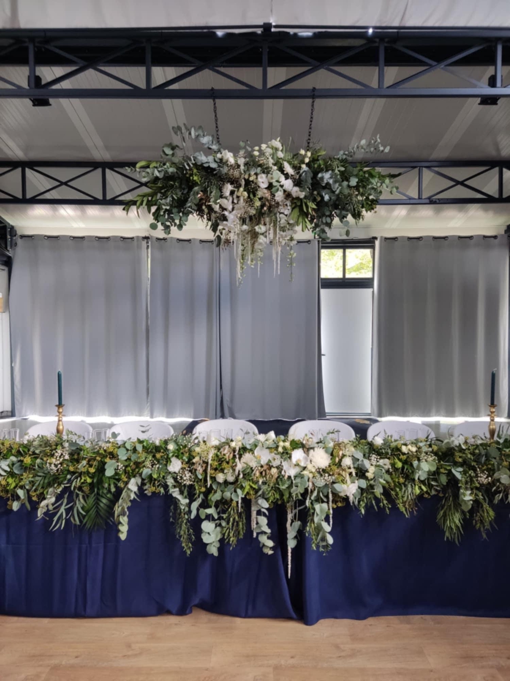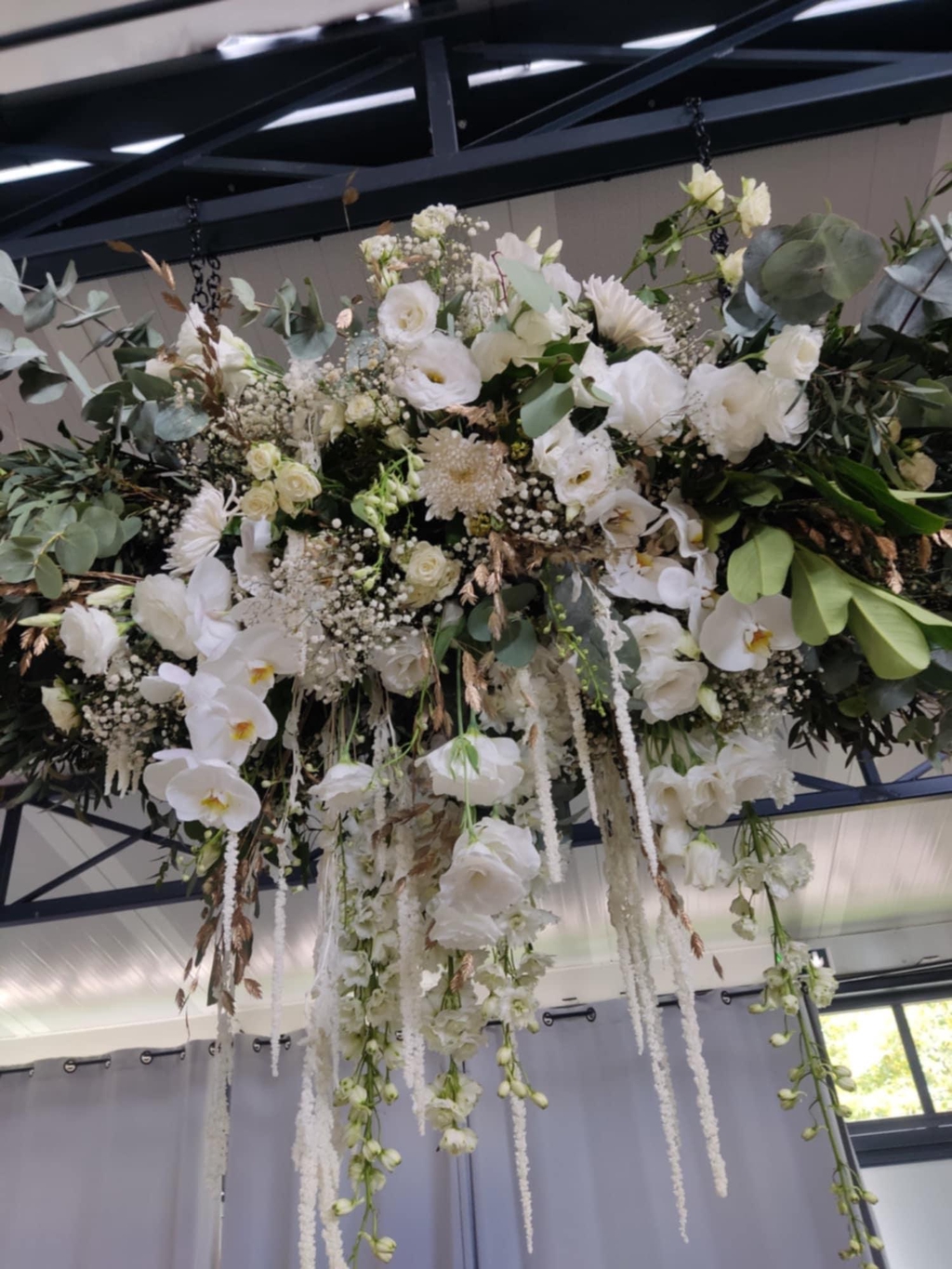 J'ai eu la chance de leur créer un magnifique lustre au dessus de leur table d'honneur et une arche majestueuse pour leur cérémonie.